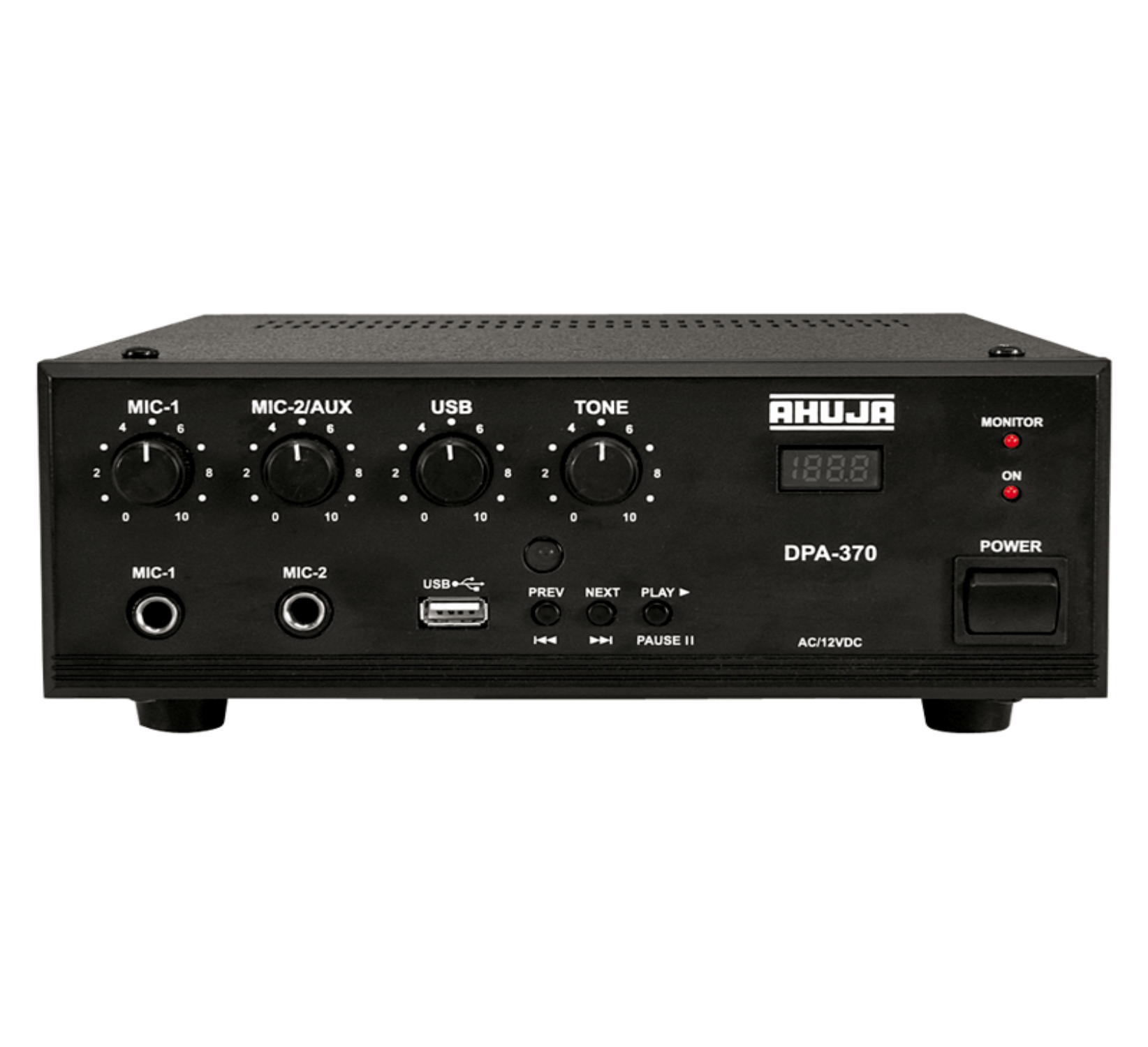 DPA-370 PA Mixer Amplifier is Built-in MP3 player with USB reader and remote control. It has Line Output for connecting to a Booster Amplifier and Cut type tone control