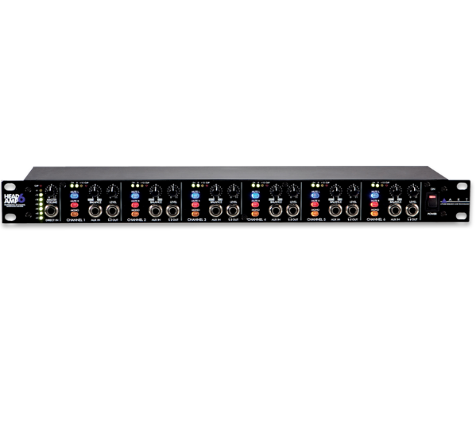 Six pairs of stereo 500mW outputs (@32Ω) give the ART HeadAmp6 power and flexibility to drive a band mix from your DAW or a live session from your booth. Each channel features an additional front-side 1/4" TRS headphone out with level control for easy access from a rack. Also around front, you'll find a 1/4" TRS Aux In so each musician can send their instrument to their own channel and blend between the shared feed and their own source; this gives the ART HeadAmp6 the potential to create 6 independent "more-me" mixes tailored to each performer. On the back, balanced Thru outputs, which are handwired in parallel with the Main Inputs, allow you to daisy-chain multiple HeadAmp6 units together. Take control of your live and studio monitoring needs with the ART HeadAmp6 headphone amplifier from Sweetwater.