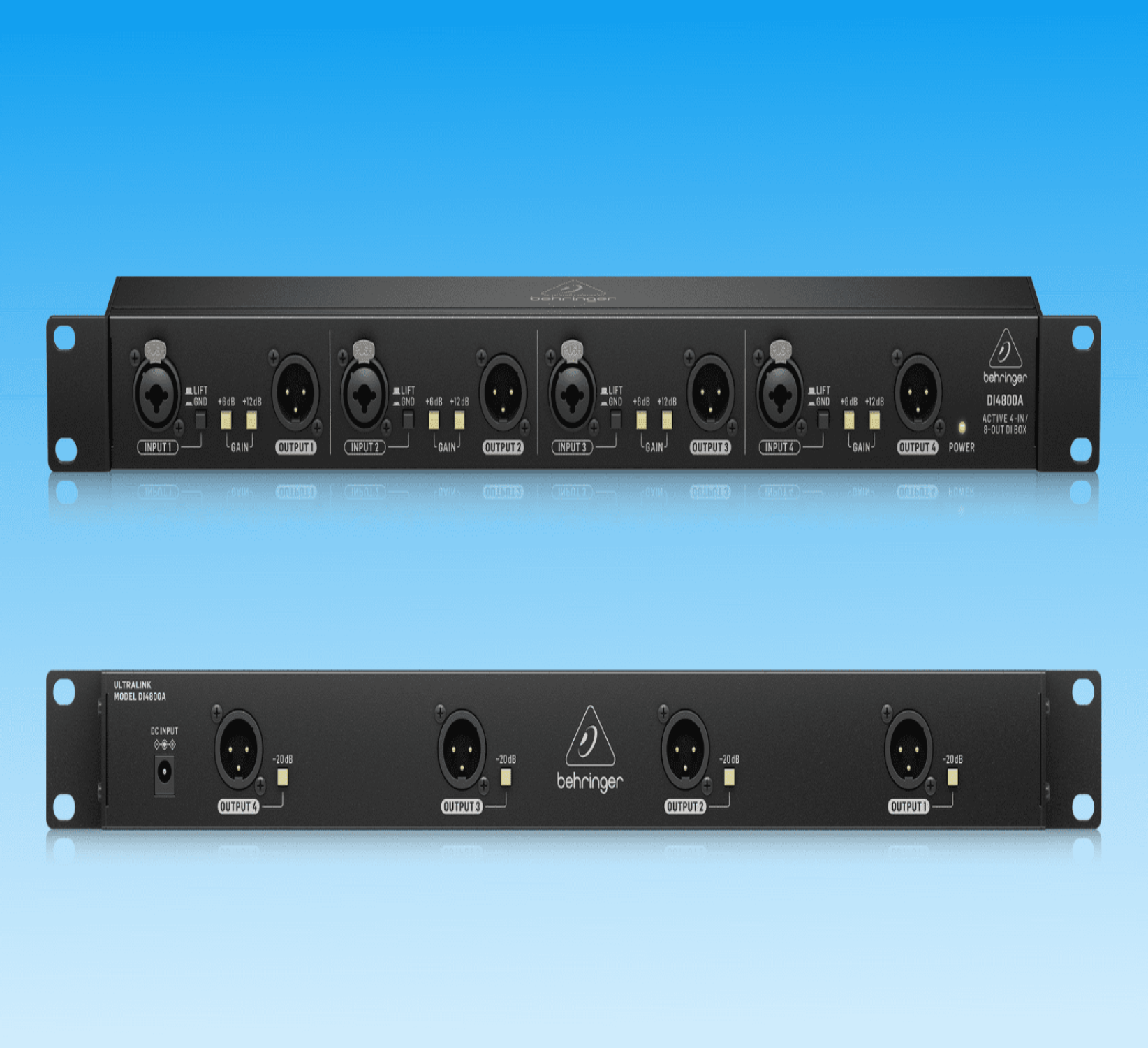 With the Behringer DI4800A 4-channel active direct box, you've got robust direct injection for the whole band in a convenient 1U rackmount size. No more messing with cumbersome stage boxes and rat's nests of cable — the DI4800A sits comfortably in a rack at the back of your stage for clean, clear reproduction of your live instrumentation. However, the budget-conscious DI4800A is more than just a refreshing take on the traditional DI. Onboard active circuitry makes this 4-channel DI an ultra-low-noise line driver as well, with stackable +6dB and +12dB active boosts for feeding weak acoustic guitar pickups and consumer-level keyboard outputs to a soundboard for amplification. In the studio, the DI4800A is equally at home as a signal splitter. Two sets of transformer-isolated outputs — one set on the front, and another set on the rear with -20dB pads — make the Behringer DI4800A a powerful creative tool in any performance environment. Take it from sound engineers Sweetwater: whether you're streamlining your stage DIs or stretching your studio limits, there's a world of possibilities waiting for you with the Behringer DI4800A Professional 4-channel Active DI Box.