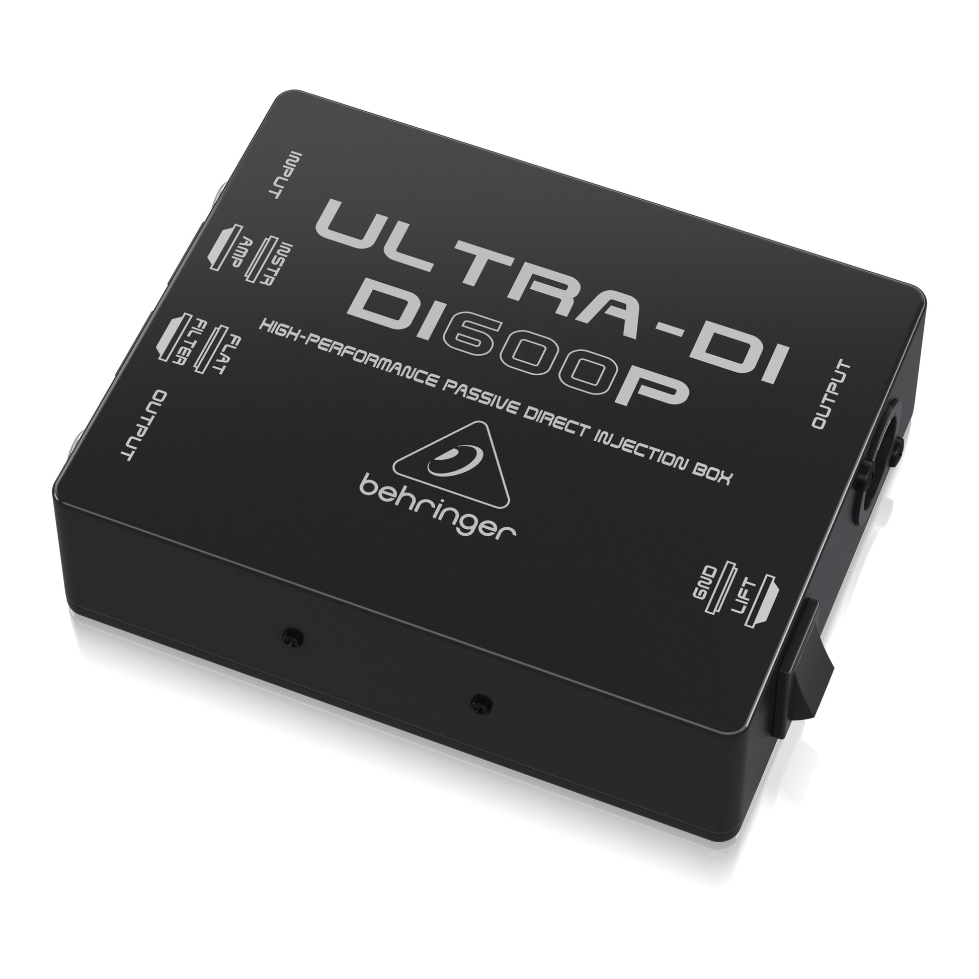 Be ready for your next gig with the Behringer Ultra-DI DI600P direct box. Designed to send instrument or amplifier signals to the main mixing board, the DI600P is a high-performance passive DI is a useful tool in any gig rig or studio. Dual 1/4" TS jacks are wired in parallel let you plug your instrument into one and use the other as an output to your amp. The balanced XLR mic-level output feeds your mixer a clean and super-flat signal that is true to the source. Sweetwater knows that grounding issues and hum can be a problem at live gigs. The DI600P sports a ground lift switch to kill unwanted ground loops and hum. It also has a filter switch for optimal guitar tone and an instrument/amp switch with a 30dB input level drop. The Behringer Ultra-DI DI600P direct box is an extremely useful tool for any stage rig!