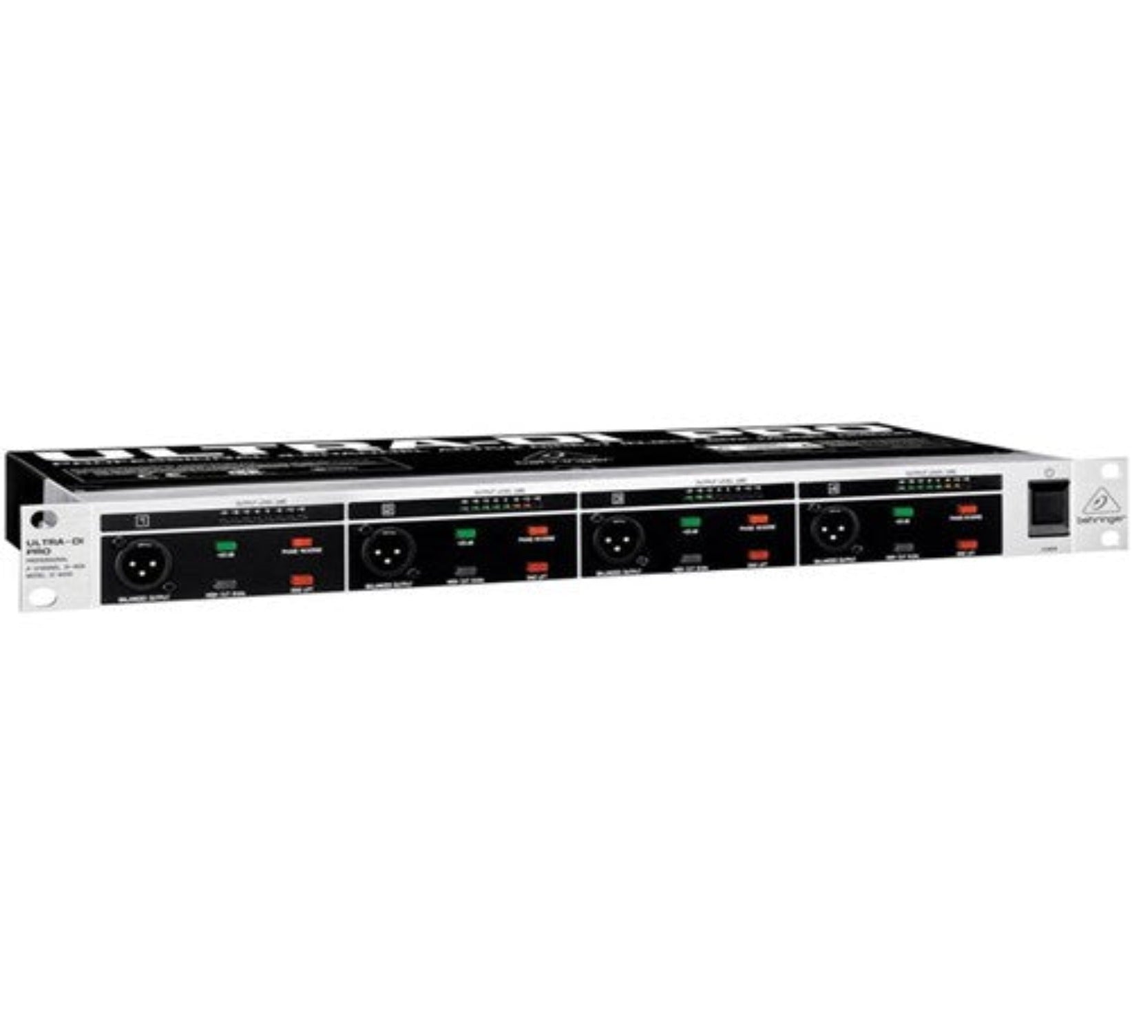 The Behringer Ultra-DI Pro DI4000 4-channel Active DI Box gives you four top-shelf DI channels in one rack space. Direct Injection (DI) boxes, of course, let you plug guitars and basses, keyboards, etc. directly into your board. For impedance matching and signal integrity, they're indispensable. The DI4000 is a DI on steroids. With its active circuitry, it sports buffered inputs that won't pollute your signal (as passive DIs can). Boasting a bevy of boost/attenuation, groundlift, and connectivity options, Behringer's Ultra-DI Pro DI4000 is your audio Swiss Army Knife.