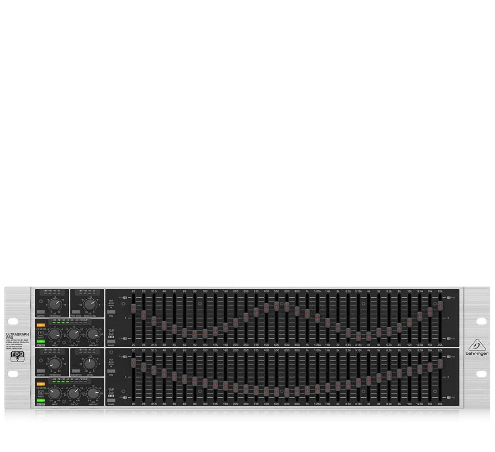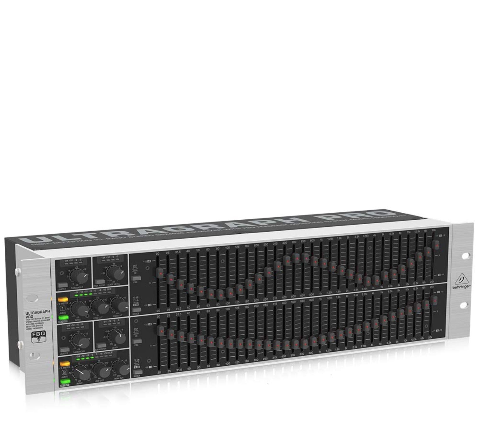 The Behringer Ultragraph Pro FBQ6200HD 31-band graphic equalizer is packed with the professional features you need. An FBQ Feedback Detection system quickly locates problem frequencies. A Planet Earth switching power supply yields noise-free audio, superior transient response, and efficient power consumption. Its 4580 dual op-amps exhibit low noise and excellent sound quality. The limiter on each of the Ultragraph Pro's channels protects your system from overload and distortion. Remove floor rumble, hiss, and other unwanted frequencies with sweepable highpass (low-cut) and lowpass (high-cut) filters on each channel. The Behringer Ultragraph Pro FBQ6200HD 31-band graphic equalizer is a great value for your studio or live sound rig.