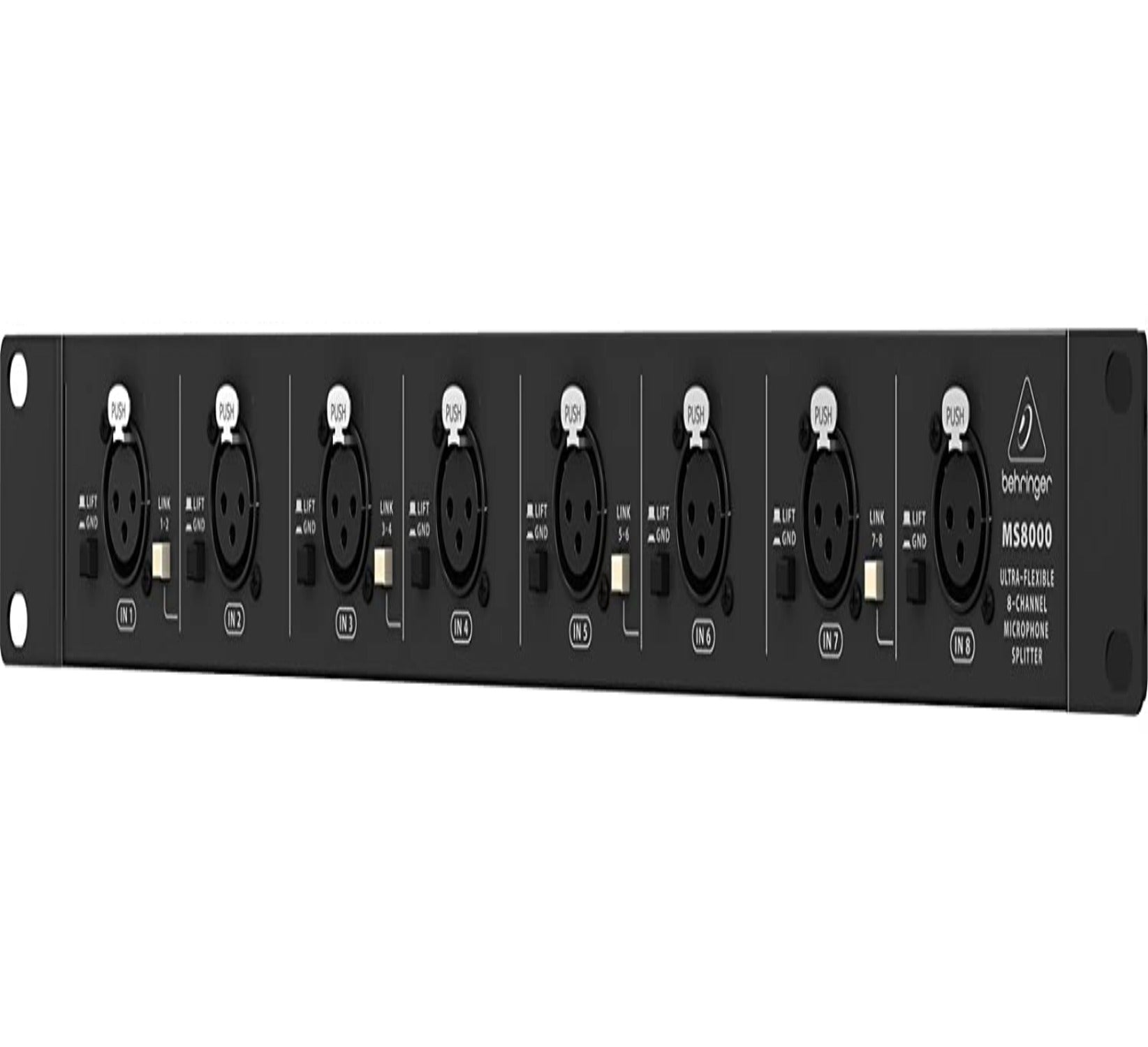 The Behringer Ultralink MS8000 8-channel microphone splitter sends your mic signal to multiple locations, such as mixing consoles, stage monitors, and broadcast trucks. This, for example, would allow you to connect to front of house and your in-ear monitors simultaneously. Eight inputs and 16 outputs provide you with plenty of flexibility, while a Lift/Ground switch and linkable channels make the Ultralink MS8000 an indispensable tool for stage and studio. How many uses could you come up with for the Behringer Ultralink MS8000 8-channel microphone splitter?