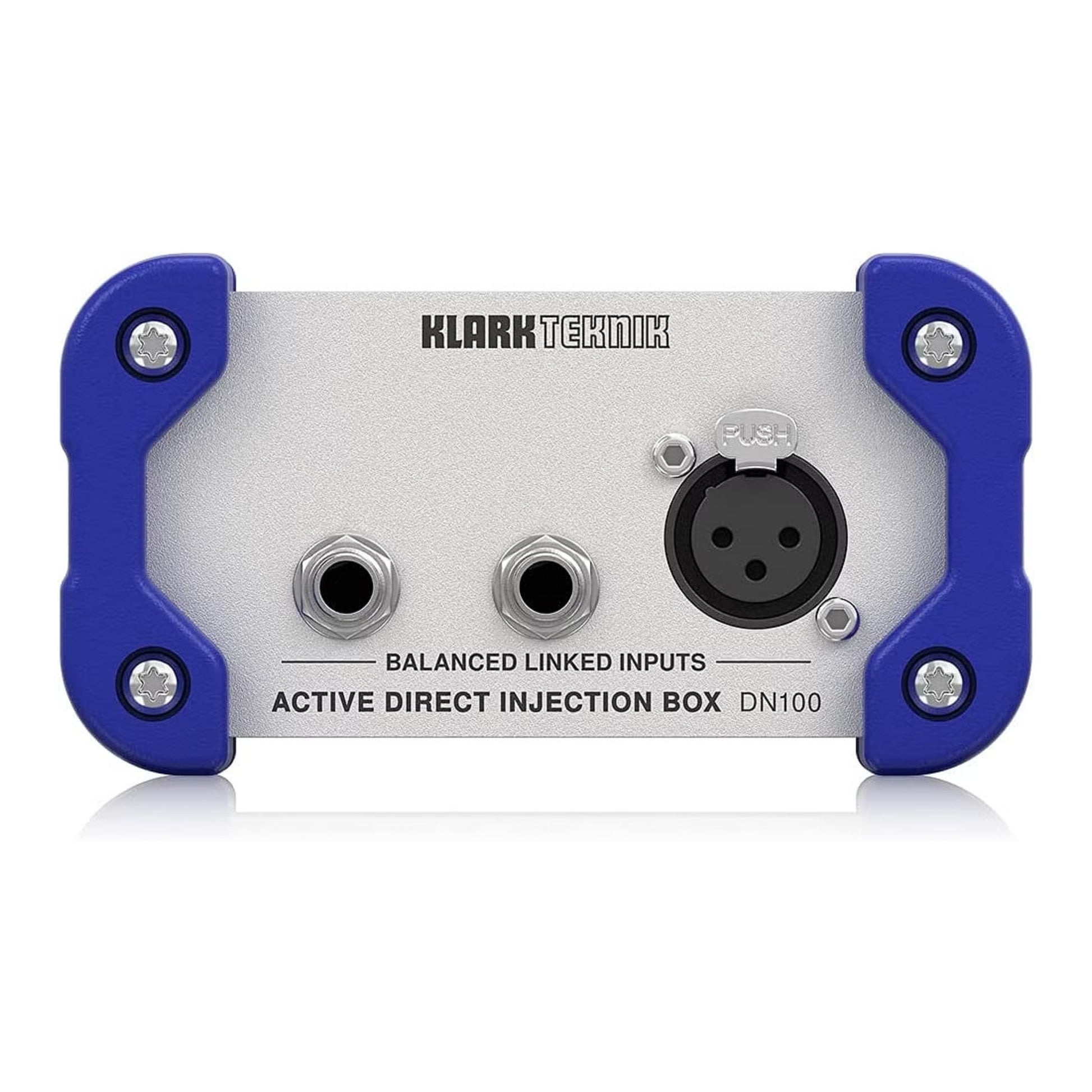 An active DI like the Klark Teknik DN100 V2 can dramatically enhance your stage and studio setup. The DN100 V2 boasts an ultra-clean active circuitry that's powered by standard 48-volt phantom power from your console — just connect the XLR output to your board, engage that channel's phantom power, and that's all there is to it. This active circuitry gives the DN100 V2 a high headroom and a wide dynamic range to accurately capture the keyboard, guitar modeler, or other balanced instrument source you've got plugged in. In addition to being a convenient way to get a stage signal into your board over long distances, the DN100 V2 also gives you parallel XLR and TRS outputs that'll let you send your signal to an amplifier or other input source. Around back, Pad and Earth switches insulate your signal against unwanted overages and excess hum due to ground loops. Worried about rowdy performers stomping all over your gear? The Klark Teknik DN100 V2's thick aluminum housing and rough-and-tumble silicone rubber bumpers are enough to instill confidence in the most protective sound engineer. Take it from Sweetwater: if you're in the market for a high-performance active DI that can take a tumble and won't break the bank, then the Klark Teknik DN100 V2 is a fine choice.