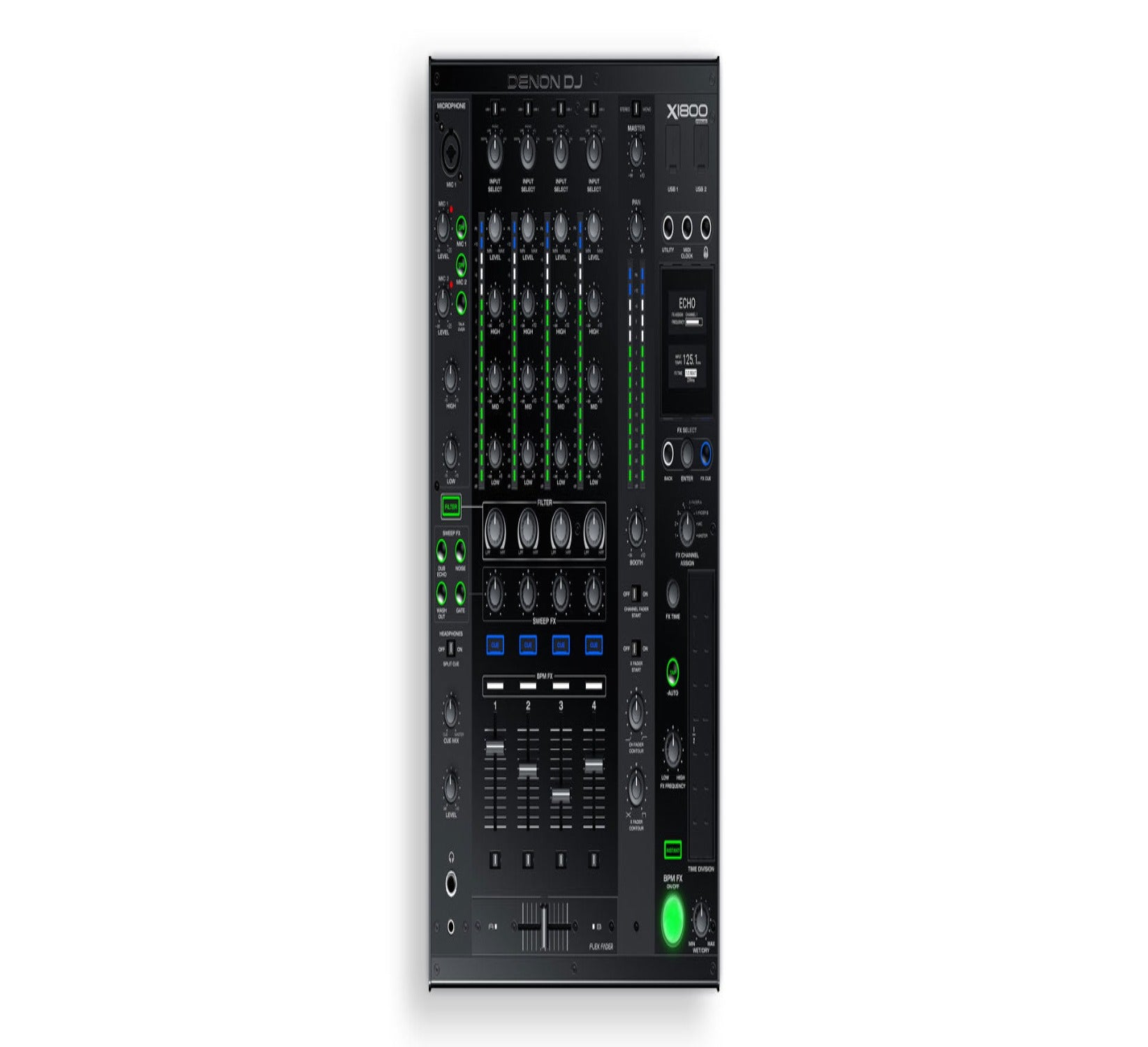 here are two great reasons to pick up a Denon DJ X1800 Prime 4-channel DJ mixer: you're a club owner, or you demand the best-possible sound from your DJ rig. Either way, you're not going to be disappointed. We're talking about all the I/O you could ask for, from phono to digital. You can assign the X1800 Prime's two USB ports independently to each channel, which lets you set up smooth handoffs between DJs — a real bonus for any club mixer. Want effects? You've got effects to spare, with Sweep FX controls for each channel, BPM effects, and support for Engine Connect protocol to lock effects to the grid. A ribbon controller even lets you manipulate time divisions on the fly, which is excellent for setting up transitions.