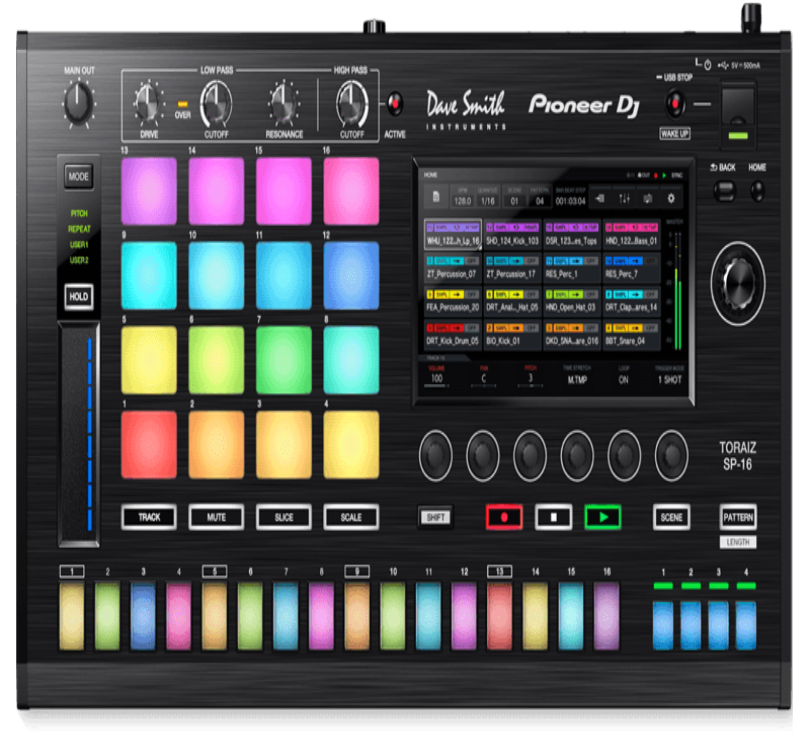 Whether you're a DJ looking to add more electronic music production elements to your set or a producer who's always wanted a standalone sampling workstation that's as powerful as software, you're going to love the Pioneer Pro DJ Toraiz SP-16. The Toraiz SP-16 is the result of a joint effort by Pioneer and Dave Smith, and it combines a powerful sample playback engine with intuitive hands-on sequencing and iconic Prophet-6 analog filters and signal processing. It's a sampler that plays like a synth. Loaded with 2GB of top-quality Loopmasters sounds in its 8GB memory, you'll be ready to lay down original grooves from the minute you plug in your Toraiz SP-16.
