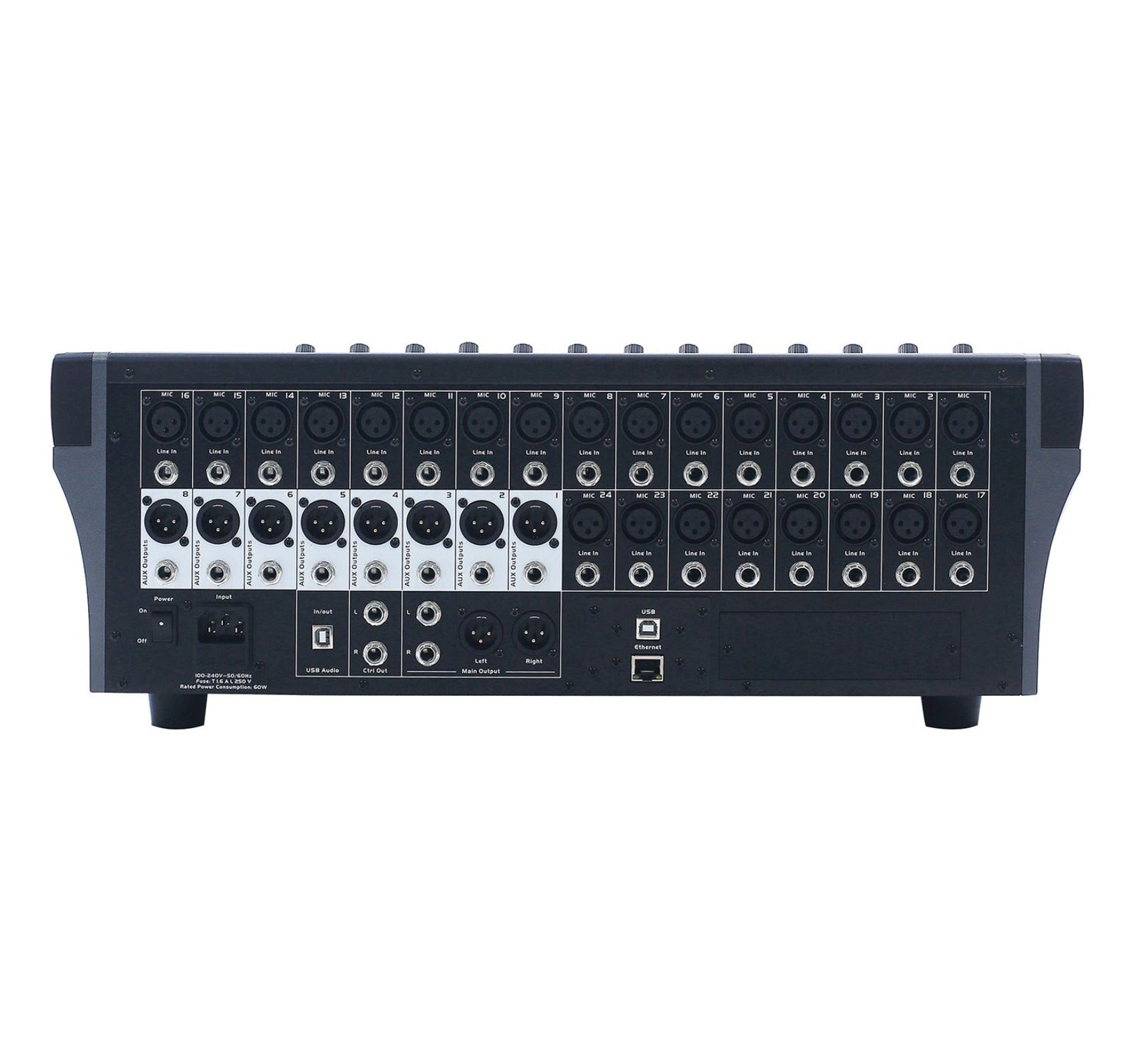 A powerful DSP offers functions like Noise/Gate, Compressor/Limiter, Parametric/Graphic EQ, PAN, Phase Reverse, Time Delay, plus a large choice of high quality digital effects.