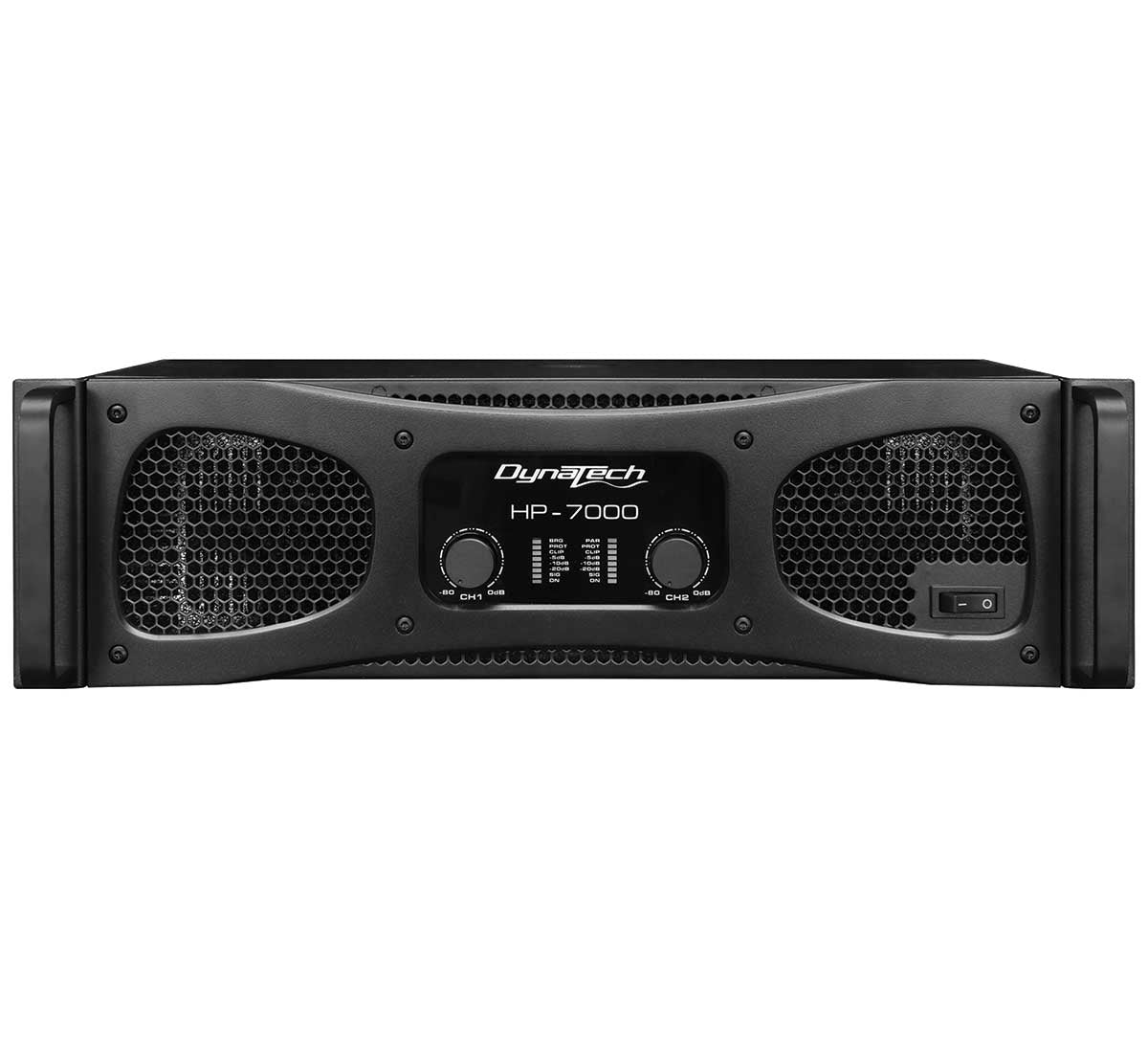 Dynatech's HP-7000 power amplifiers are built around robust and advanced toroidal transformers, and deliver clean power on demand. The advanced protection circuitry guards against short circuit, over load, clip limit, peak current limit, over heat and open circuit, and also protects against ultrasonic and RF interference.
