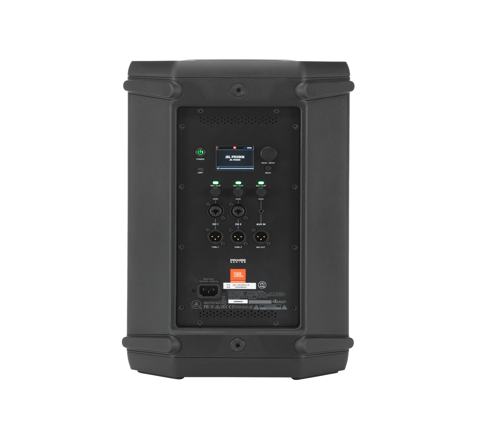PRX908’s class-leading DSP package, accessible via an onboard color LCD or the JBL Pro Connect app, features 12-band parametric EQ for system tuning and nuanced tonal control; integrated dbx DriveRack technology includes live and fixed Automatic Feedback Suppression, soft system limiter with Soundcraft Overeasy option and speaker delay settings and presets.