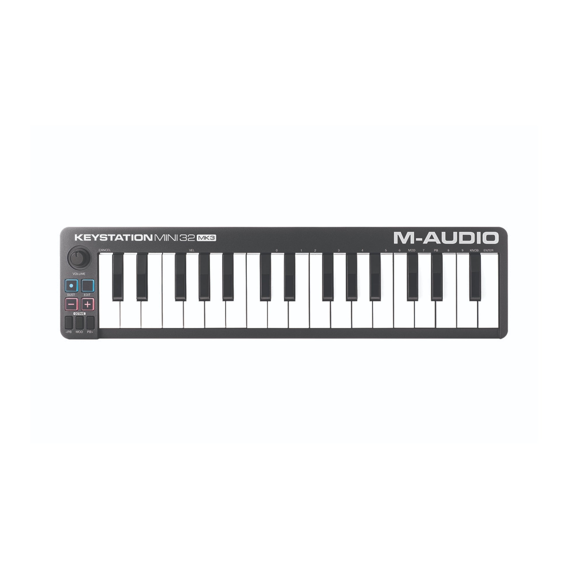 Start creating and performing music with your Mac or PC with the world’s best-selling keyboard controllers: The Keystation Series from M-Audio. Whether you’re a seasoned pro looking for just the right controller when you’re on the go or you’re looking to get started with the right mini USB MIDI controller, the Keystation Mini 32 MK3 is for you! It’s a simple, powerful MIDI controller designed for sequencing music and playing virtual instruments on your Mac or PC. Keystation Mini 32 MK3 features 32 natural-feeling mini-size velocity-sensitive keys and comprehensive controls that expand the range of playable notes and enhance your expressive possibilities.