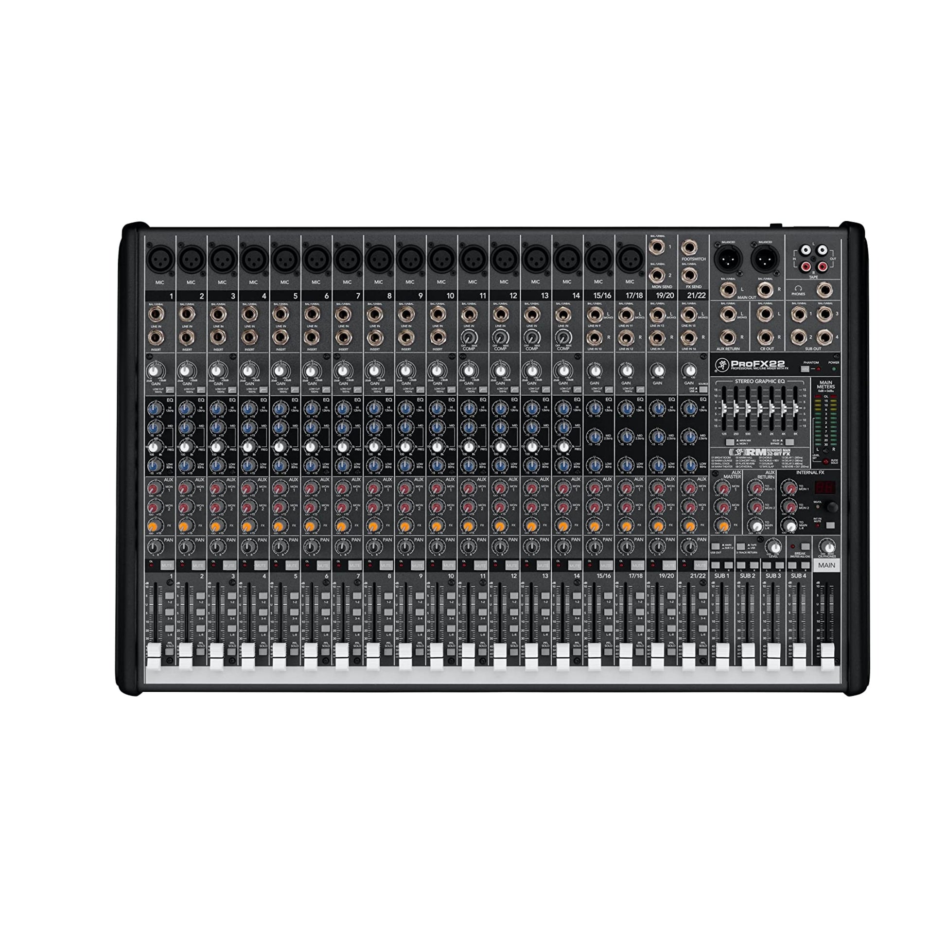 Think of the Mackie ProFX22 22-channel 4-bus mixer as your "audio swiss army knife." If you've got a band or a midsized venue that needs pro sound - but don't have the space or budget for mountains of outboard gear - the ProFX22 is your sonic problem solver. Onboard, you've got 16 Mackie low-noise mic preamps, 3-band EQ with sweepable mids, integrated gig-ready effects, precision 7-band GEQ, and more. You'd need a semi for all this in the old days. Now Mackie packs it all into a great-sounding, roadworthy mixer! If you're in need of a new mixer, the Mackie ProFX22 should be on your short list.