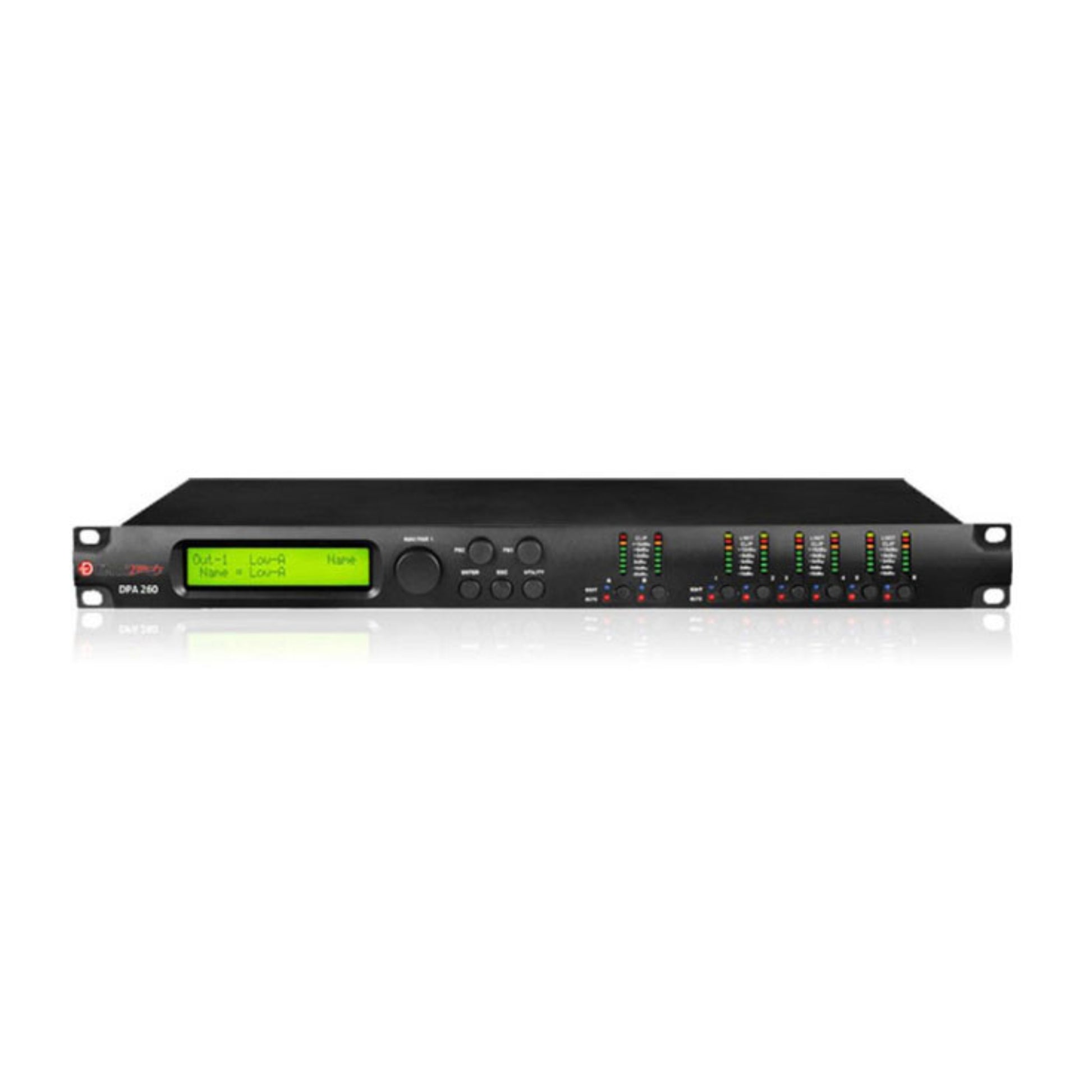 DPA Series provide professional digital speaker management system. Designed to be catered for any crossover configuration, it provides the suitable processing and control necessary for both live and fixed installation use. It offers 2/3/4 analog inputs, 6/8 analog outputs, managed by a powerful DSP Engine, in addition to high performance 24 bit AD/DA Converters. Each input channel provides a choice o EQ with Parametric EQ, Noise Gate Function, Gain control, RMS Compressor, Internal White/Pink noise generator and configurable Delay. Each output offers up to 7-band of parametric equalization, in addition to the crossover filters which themselves provide slopes from 6dB/Octave up to 48dB/Octave. Each output path also features Peak Limiter and driver alignment Delay. The DPA Series supports a full matrix mixing mode where inputs may be routed/mixed in any ratio to any output. For remote configuration and control the DPA Series can be connected via USB or RS485 connections. The control remote PC software allows simultaneous control up to 32 units, setting all parameters and showing real time levels.