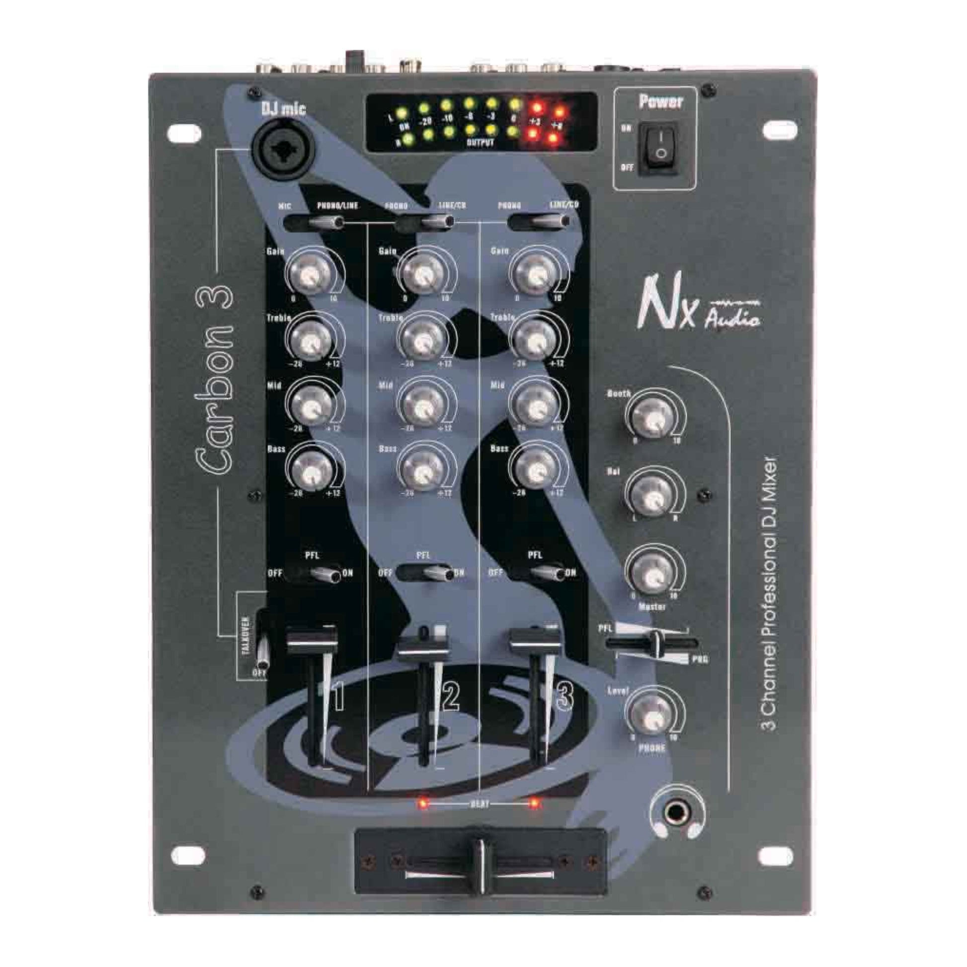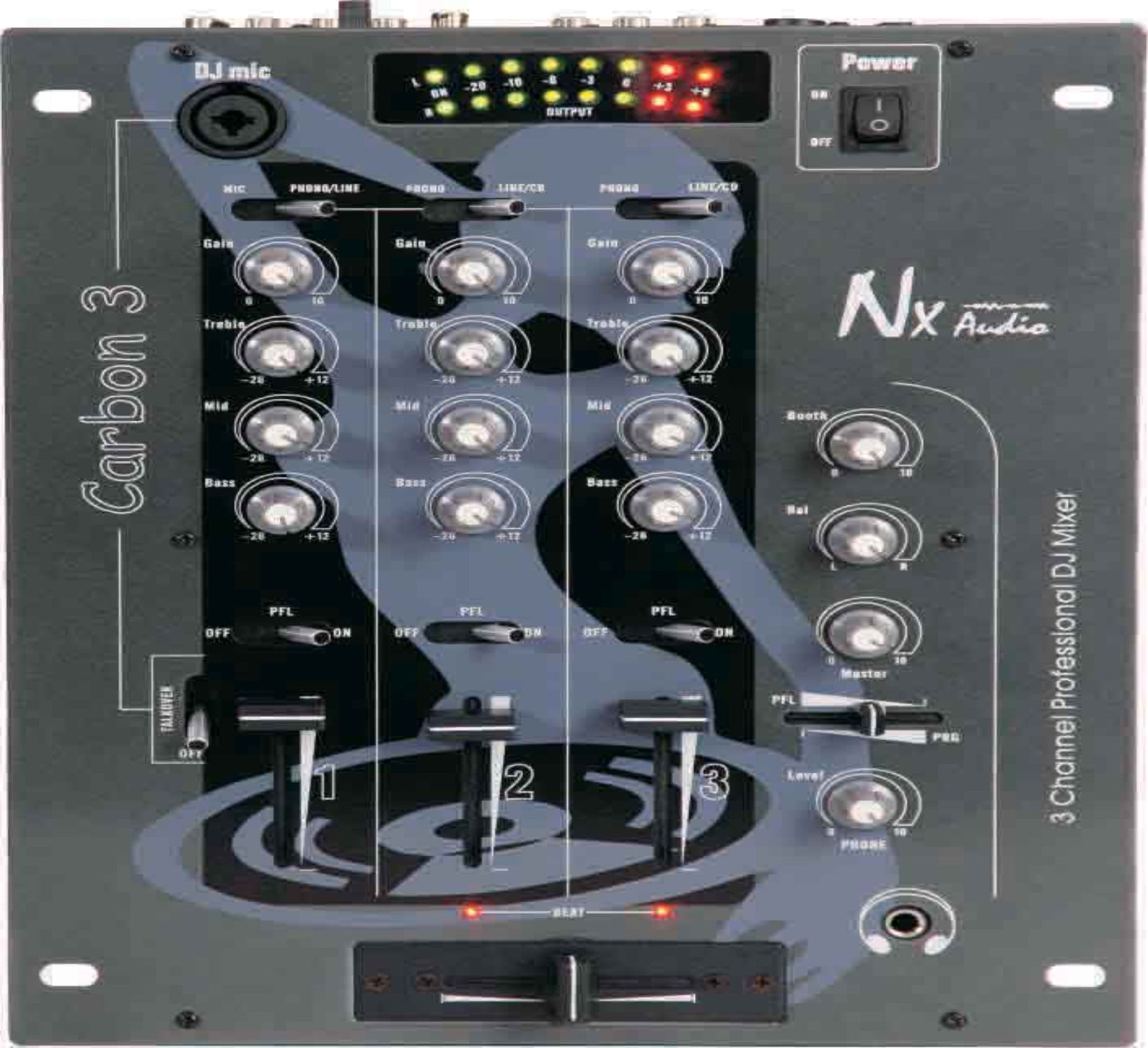 Carbon 3 comes with multiple inputs 3 line and 3 phone input with grounding connection for turntables and 1 Microphone which is a combo jack using either a XLR connector or P38 Mono Jack. Multiple outputs like XLR Balanced and unbalanced RCA outputs with recording out and booth out for personal monitor provide immense flexibility The superior build quality and rugged components used in these mixers serve you well for years to come. A Special feature is the VAAT Voice Activated Automatic Talkover system which automatically mutes the music and microphone takes predominance over the music Carbon3, feature super-smooth channel faders and the removable rail glide crossfader for the utmost in reliability and smooth audio performance. The 8 segment stereo LED shows audio level for master and PFL. Carbon3 is absolute value for money.