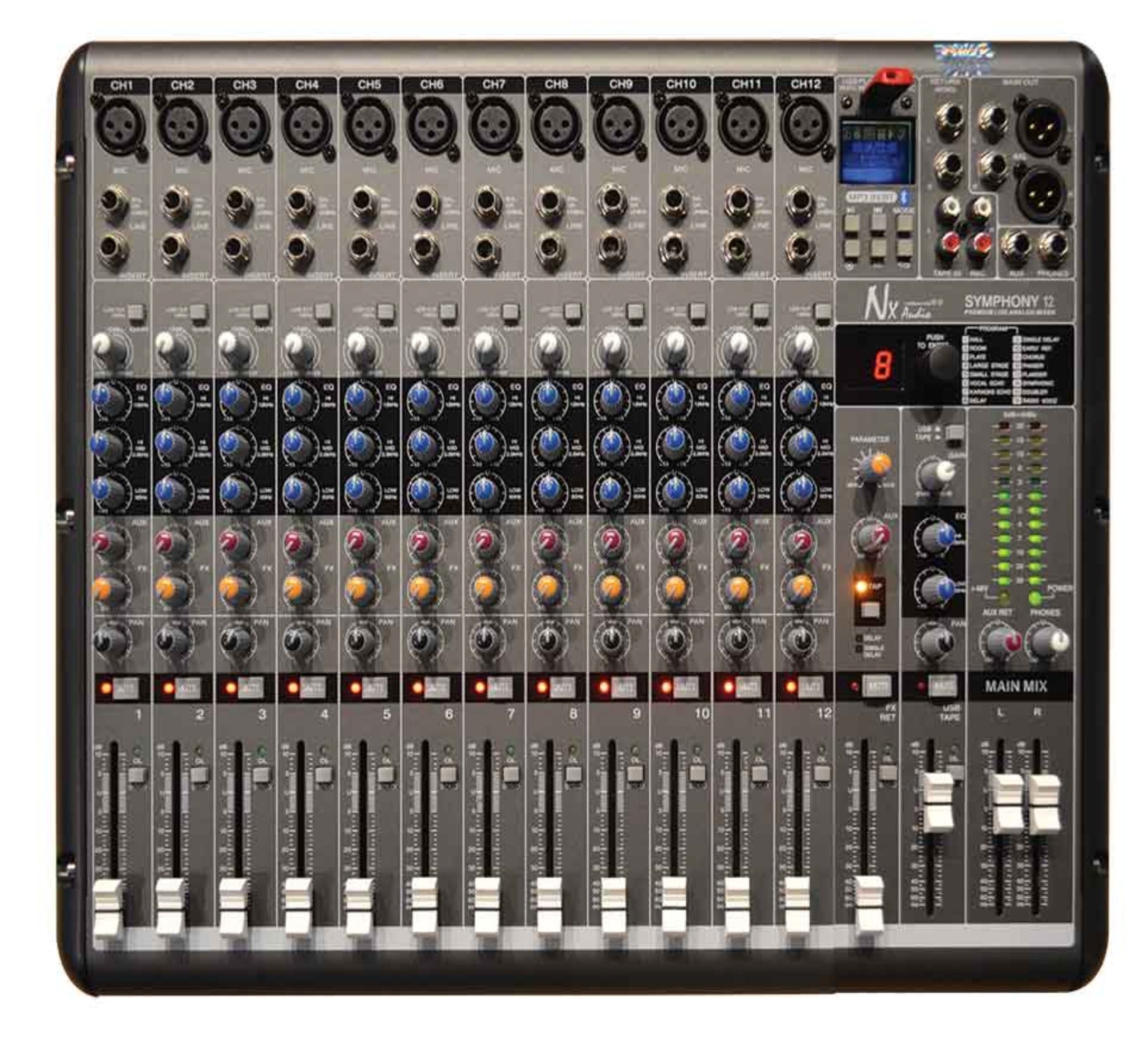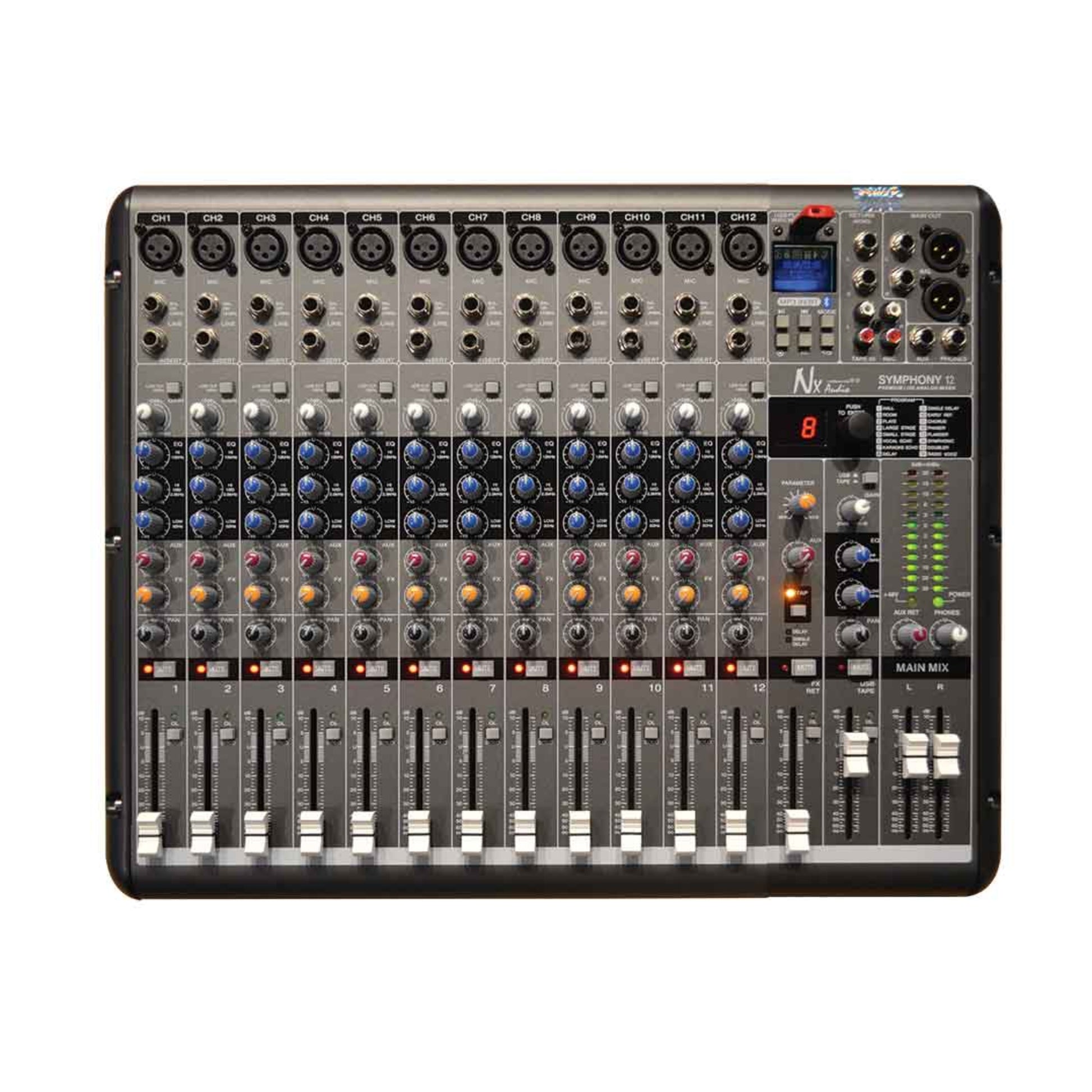 The SYMPHONY series has been designed to offer all the features required in a Portable live Mixer at very economical prices. The Symphony builds on the legacy of the popular F series offering 24bit DSP, 2 aux , 3 band Eql , Pan, Mute and PFL on each channel plus Direct USB playback on the master channel
