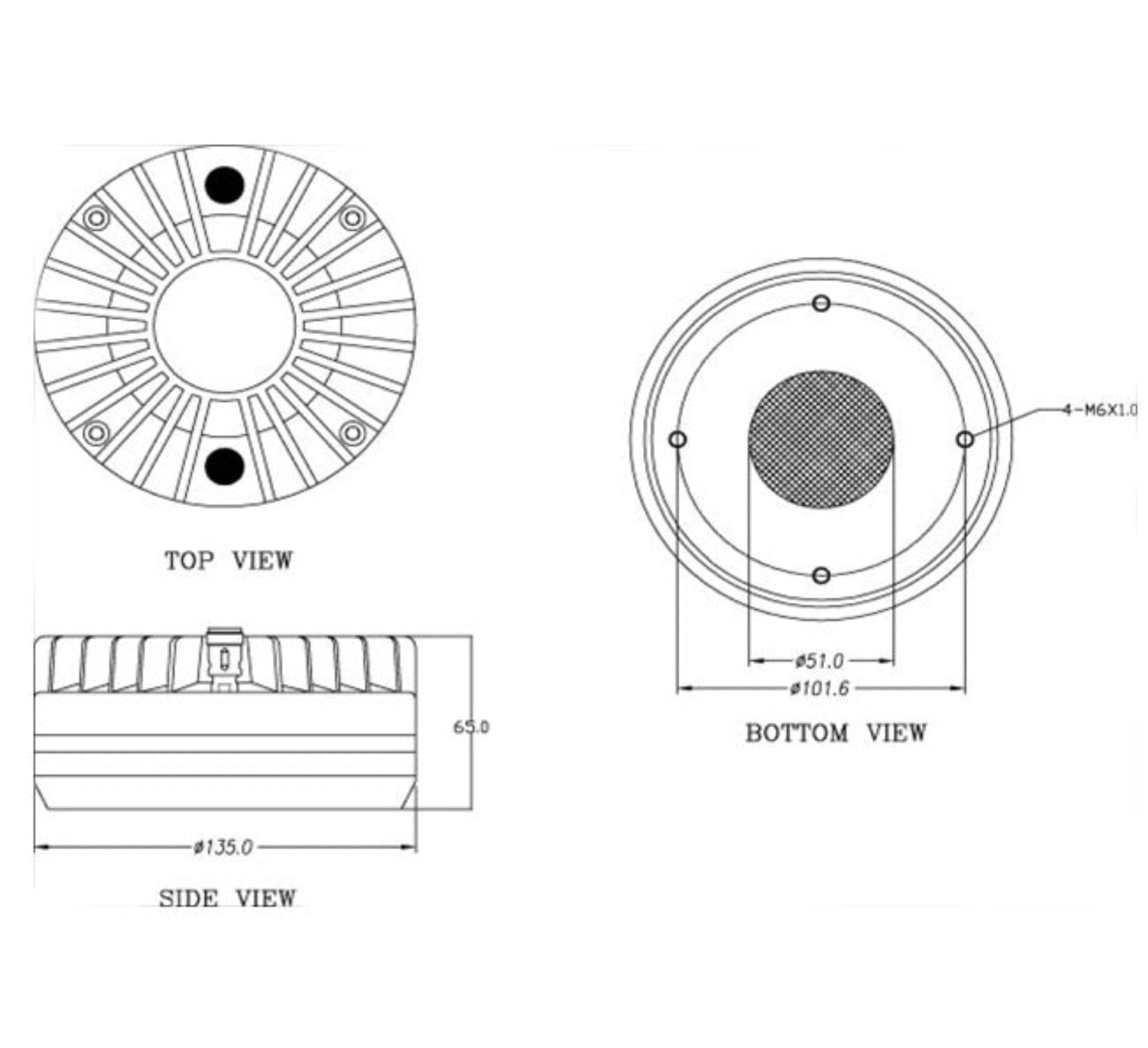 The P Audio SD-750N is a state of the art high output compression driver. Advanced engineering and manufacturing methods have produced an extremely reliable and wide bandwidth device that also features very high fidelity.