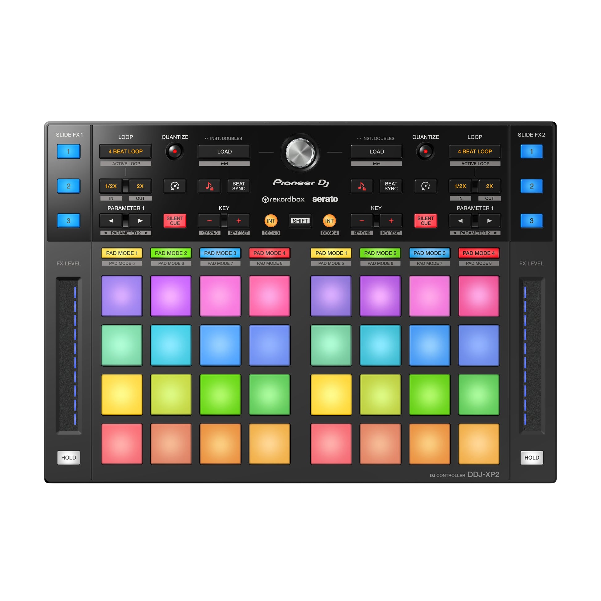 Level up with the DDJ-XP2 add-on DJ controller for rekordbox dj and Serato DJ Pro. No matter which DJ application you’re used to, this DJ hardware will enable you to get more out of it than ever before. This DDJ-XP1 evolution adds to the functionality of the original, without sacrificing the intuitive layout and solid build quality. Its sturdy construction and non-slip rubber surround mean you can hit it as hard as you want during performances.
