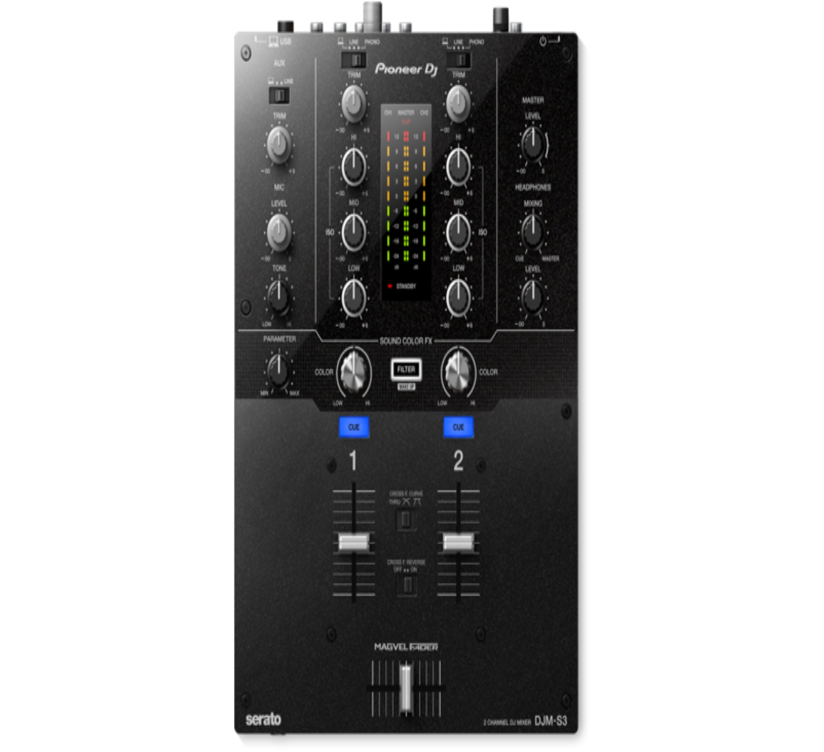 Solid, simple, and down-to-earth, Pioneer DJ's affordable DJM-S3 is a 2-channel mixer any DJ can appreciate. For starters, this DJ mixer feels fantastic. One close-up look at this thing, and you'll notice exactly how well built the DJM-S3 is, with every knob and fader — including the professional-grade Magvel Pro crossfader — providing smooth and precise motion. Building a hybrid digital DJ setup? No problem. The DJM-S3 is not only ready for Serato DJ, but it's also compatible with DVS, so you can connect your favorite turntables, drop some control vinyl, and you're good to go.