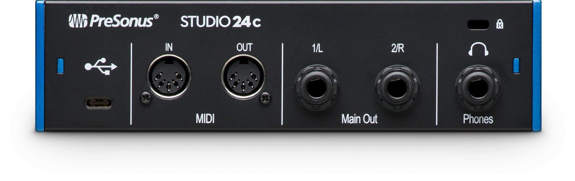 Loaded with two sweet-sounding XMAX-L preamps, the PreSonus Studio 24c is tailor-made for solo vocalists/rappers, mobile musicians, guitarists, podcasters, and live streaming. Beyond that, two rear-panel line outputs make connecting a set of studio monitors easy. You also get MIDI I/O for your keyboard controller, so working with virtual instruments is a breeze. Experience low-latency monitoring thanks to the Studio 24c’s mixer knob. And you can start recording right away with the included Studio One Artist software and Studio Magic plug-in suite.