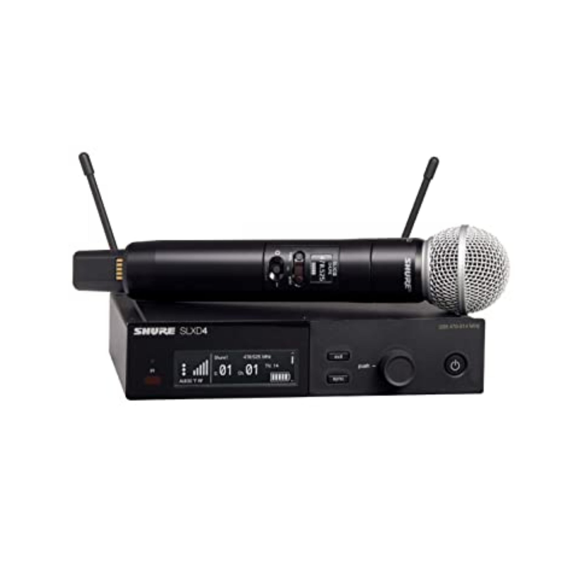 The Shure SLXD24/SM58 Wireless Handheld Microphone System includes the Shure SM58 Handheld Transmitter and the SLXD4 Digital Wireless Receiver. The SM58 is seen on stages around the world because of its legendary sound and its go-anywhere, do-anything construction. If you love the SM58 already and want a wireless version, this is the system to choose.Shure's cutting edge digital wireless technology delivers 24-bit audio resolution with an almost imperceptible 3.2ms of latency. Add in the working range of 100 meters (328 feet), and you've got a recipe for serious wireless potential. If you're ready to take the plunge and give your system a much-needed upgrade, you can't go wrong with a Shure SLX-D wireless setup.