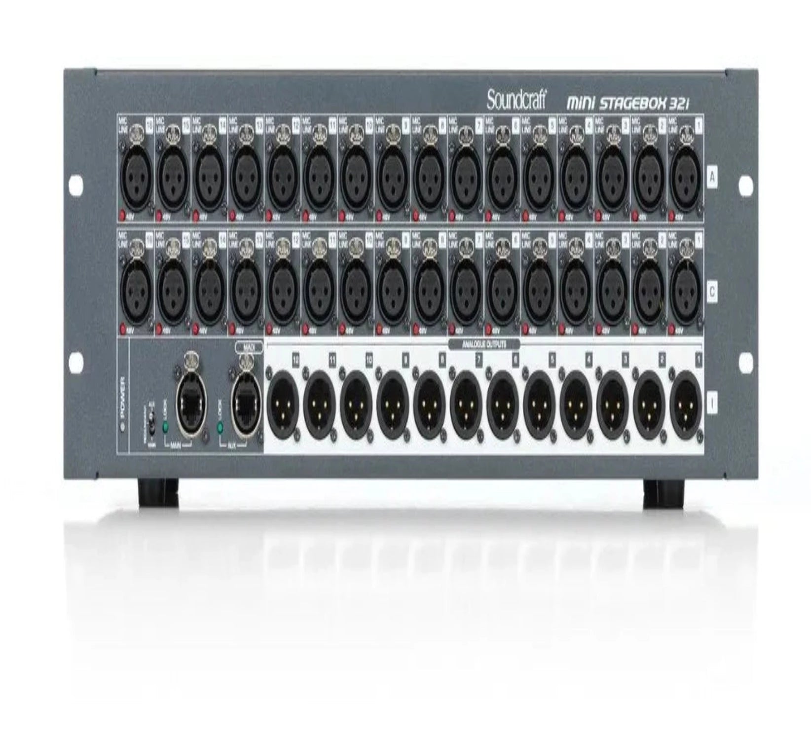 The Soundcraft Mini Stagebox 32i gives you an easy stage-connectivity solution. This 3U chassis gives you 32 analog mic/line inputs, 12 analog line outputs, and dual MADI connections, for a total I/O capacity of 32 inputs and 12 outputs. These Mini Stagebox units interface with Soundcraft Si Series consoles via remote control, giving you wireless mixing power. They sport an integral PSU, making them completely self-contained for convenient stage-side placement. Expand your wireless mixing capabilities with the Soundcraft Mini Stagebox 32i.