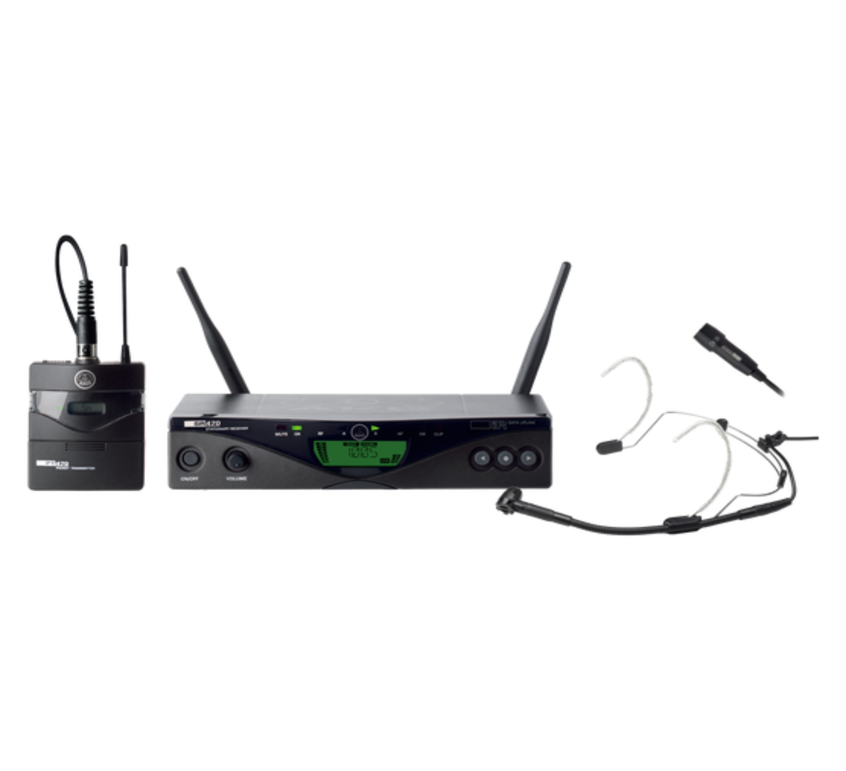 The AKG WMS 470 Presenter Set Wireless Microphone System delivers quality, reliable wireless transmission, flexible features and intuitive control for speech, presentations, sermons, instruction and more. The WMS 470 Presenter Set consists of the SR470 diversity receiver, PT470 bodypack transmitter, CK 99 L lavalier microphone and C 555 L headworn microphone.