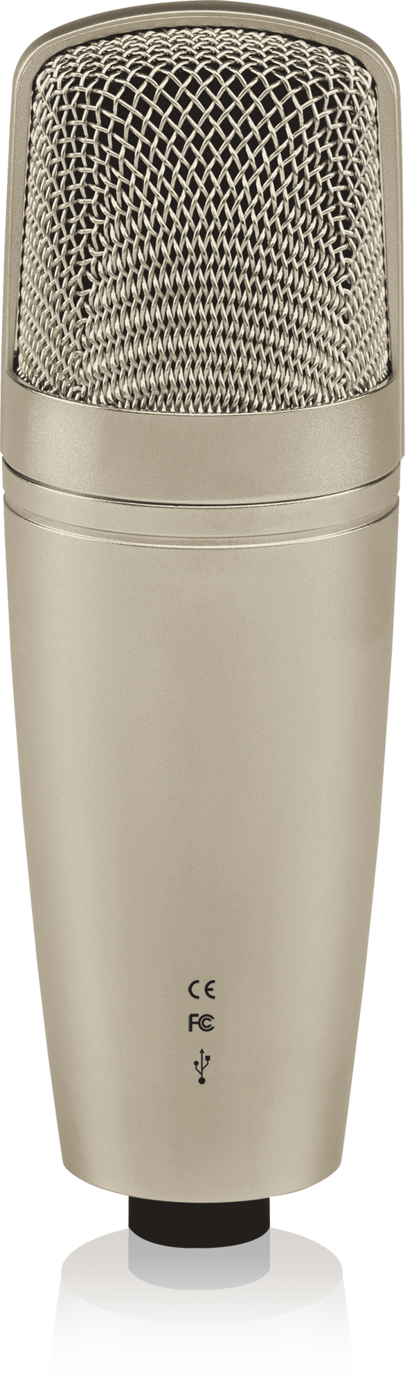 The Behringer C-1U USB studio condenser mic is a podcaster's dream come true. With a simple USB connection straight into your computer, the C-1U brings studio-quality sound to your podcasts. Musicians who record music on computers now have a simple, affordable way to capture high-quality vocal and acoustic instrument performances as well. The C-1U includes a bundle of cool podcasting and audio editing software for your Mac or PC. If you're a computerized musician or podcaster, you need a mic designed specifically for what you do: the Behringer C-1U.