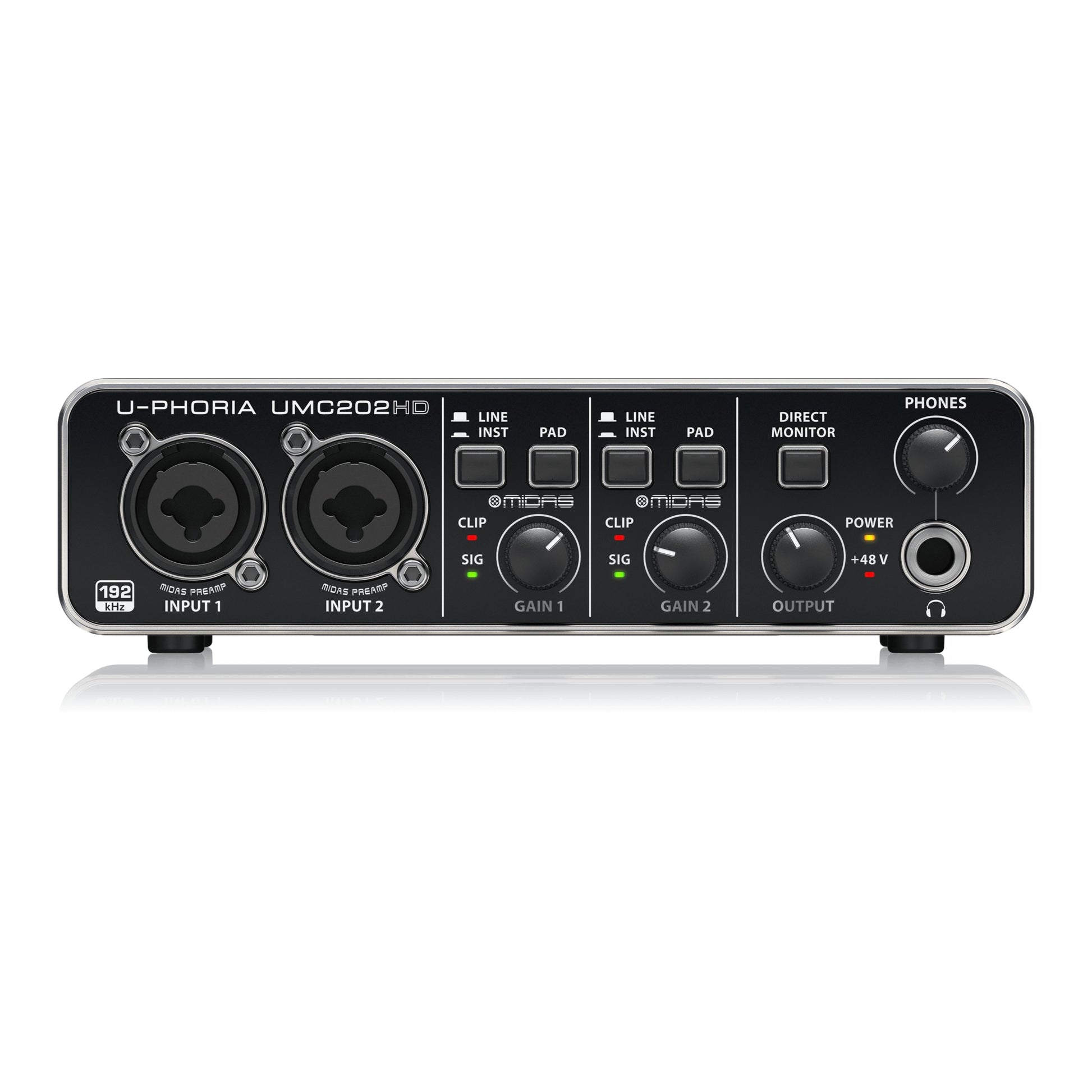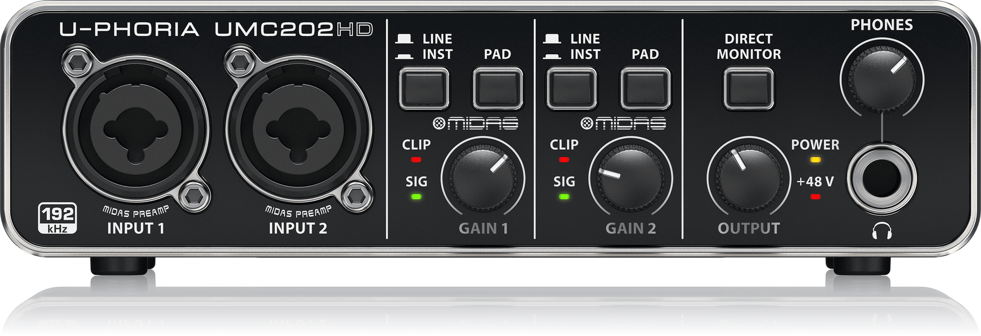 This blazingly fast USB 2.0 studio in a box will have you recording your next masterpiece in minutes with all the connectivity for microphones, guitars, bass and keyboards. Record the perfect vocal right to your computer-based DAW thanks to the 2 astonishingly pure, worldclass Midas designed mic preamps, which include +48 Volt phantom power for condenser microphones, all going through studio-grade 24-Bit/192 kHz converters for the best possible sound quality. Whether you’re a singer-songwriter, producer on the go, or just need a rock-solid interface for running backing tracks at a gig, the ultra-dependable U-PHORIA UMC202HD will help you shine in the digital domain.