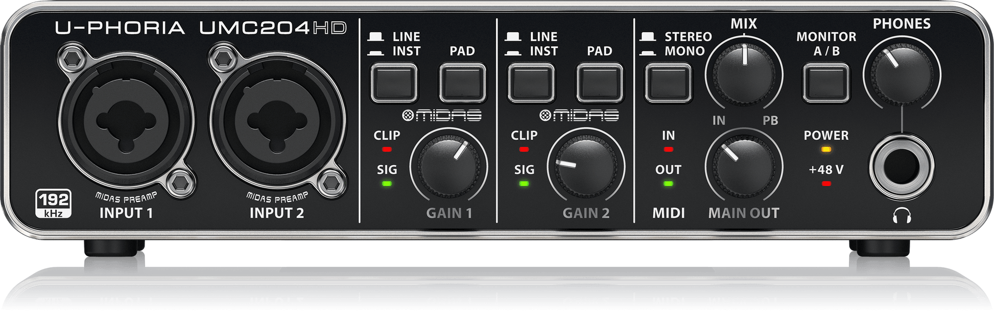 The incredible U-PHORIA UMC204HD bridges the gap between your creativity and your fans. This blazingly fast USB 2.0 studio in a box will have you recording your next masterpiece in minutes with all the connectivity required for your microphones, guitars, keyboards and even MIDI devices.