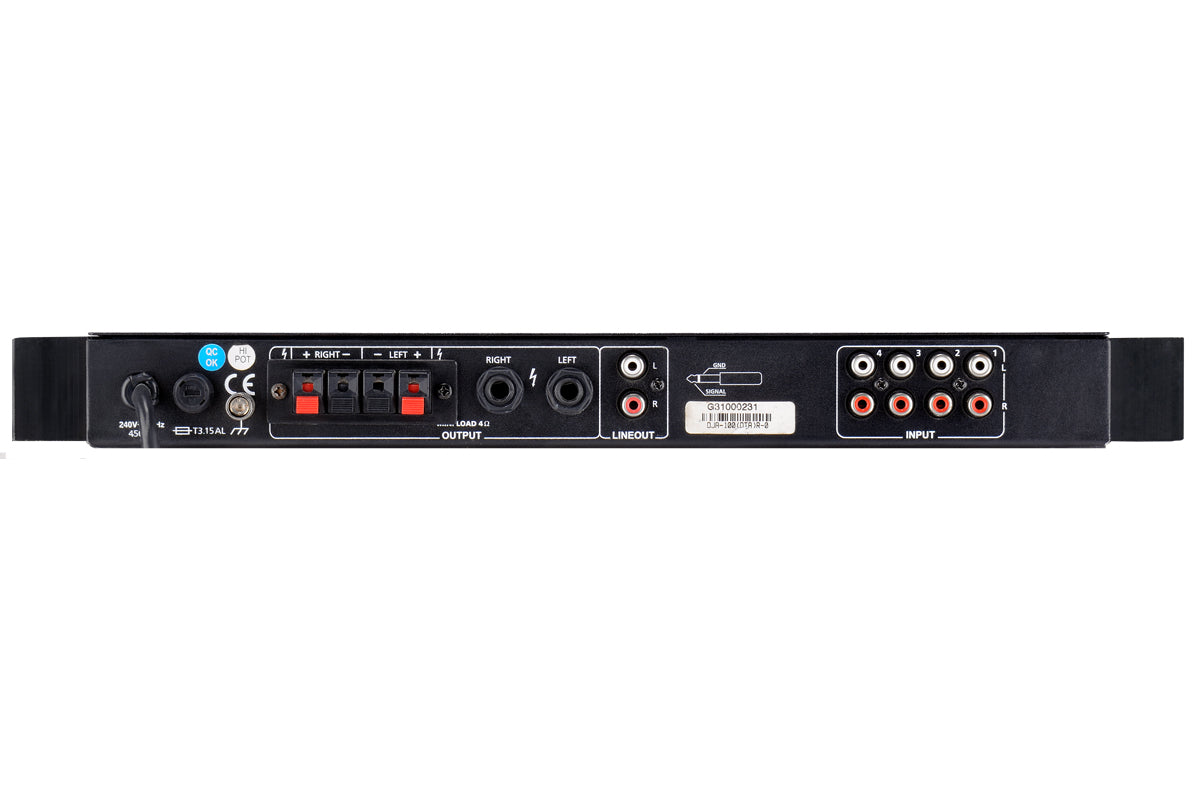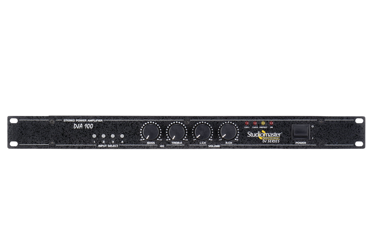The DJA 100 is a multi input high quality stereo power amplifier offering great sound clarity & reliability, for a variety of applications.