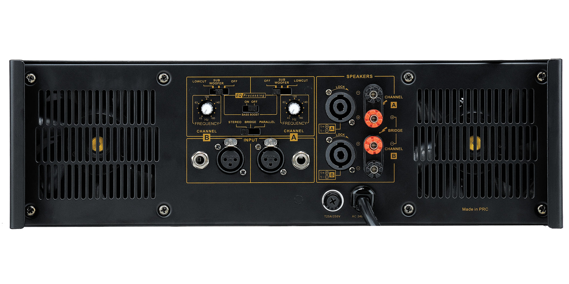 •  Output: Speakon & Binding Post Connectors.